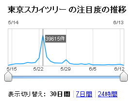 なお、現時点では、時期の絞り込みはキーワード入力時の検索条件などで直接指定することはできず、いったん検索結果ページを表示してから推移グラフで指定し直す必要がある。