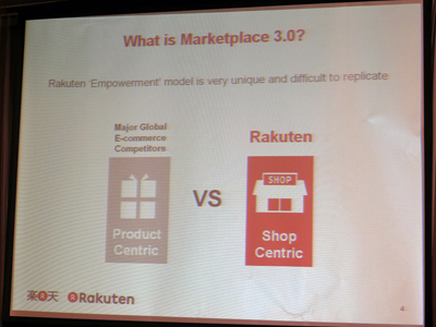 だからこそ我々は店舗の育成にも力を入れ、本物さながらのショッピングアーケードを確立した。その結果、住宅地にあるような小さな店舗も出店し、Amazonと比べても商品が安い。楽天はAmazonと十分戦えるプラットフォームを展開している。