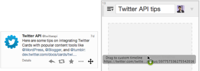作成したカスタムタイムラインには固有のURLが割り当てられ、他のユーザーとの共有ができるほか、自分のページにカスタムタイムラインを埋め込み表示することが可能。TweetDeckのユーザープロフィールから、そのユーザーが作成しているカスタムタイムラインを参照することもできる。