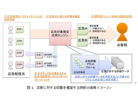 化粧品広告を用いた実証実験では、243人の閲覧者が受ける印象を約71.7%の精度で推測できたという。さらに広告に対する評価データを学習することで、さまざまなジャンルに対応可能だとしている。