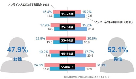 日本のネット人口、55歳以上の占める割合が世界よりも大きいのが特徴、モバイルでは4割