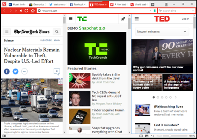 タブのピン留めや、別ウィンドウとしてのドラッグといった、主要なタブブラウザーが備える各種の機能はもちろん、Operaを彷彿させる「スピードダイヤル」や、サイドバーにスマートフォン向けのウェブサイトなど表示できる「Webパネル」、類似タブをグループ化できる「タブスタック」、お気に入りのタブをセットとして保存できる「セッション」、コマンドラインでの操作が可能な「クイックコマンド」、キーボードショートカットやマウスジェスチャーのカスタマイズなど、ヘビーユーザー向けの機能を備える。また、Chromiumベースのため、Chrome拡張機能の利用にも対応している。