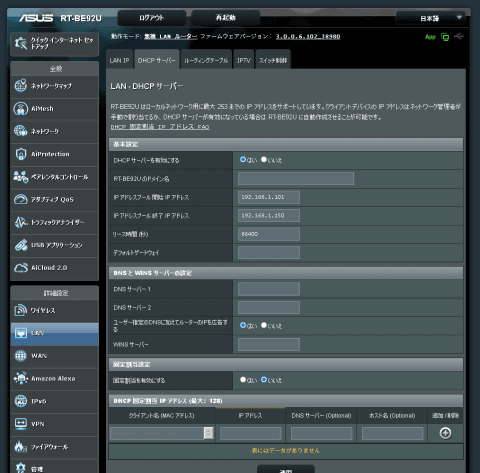万が一のバッティングを避けるため。これも既存ルーターの設定をそのまま持ってきてよい。もしパブリックDNSサーバーを指定するなら、ここで設定しておく。