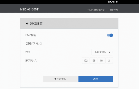 5. 既存ルーターのDMZ設定で追加ルーターのWAN側IPアドレスを指定する