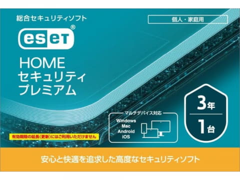 「ESET HOME セキュリティ プレミアム」は、アンチウイルスやランサムウェア対策機能のほか、パスワードマネージャーも備えた個人向けのセキュリティソフト。PC・スマートフォンに対応している。カード版の1台3年版が9306円。オンラインコード版は、1台3年版が8460円、5台3年版が1万3050円。
