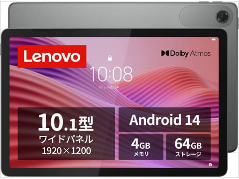 「Lenovo Tab ZAEH0157JP」は、MediaTek Helio G85(8コア)を採用した10.1インチ(1920×1200ドット)タブレット。メモリ4GB、ストレージ64GBを備え、OSはAndroid 14。microSD(最大1TB)対応。重量約425g。セール価格は2万4800円。