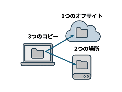 - 1つのオフサイト:1つのコピーは別の場所に保管する