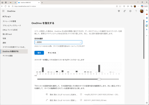 クラウドのみのバックアップだと3-2-1ルールは? と思うかもしれない。厳密にこのルールに従うとは言えないかもしれないが、OneDriveはクラウド上のしくみとして削除されたファイルの復元機能や過去のファイルへの復元、バックアップからのデータの復元機能を備えている。