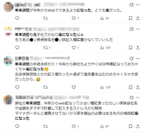 年末調整の時期は、社員数の多い会社は早め、少ない会社は遅めの傾向がある。昨今、SNSでは「年末調整が電子化、Web化で楽になった」という声が増えつつある。この電子化・Web化も社員数の多い会社で導入が進み、社員数の少ない会社はまだまだ手書きの傾向がある。なので11月・12月に提出する人は、年末調整を手書きで記入している可能性が高い。