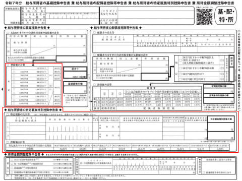 -「令和7年分 給与所得者の基礎控除申告書 兼 給与所得者の配偶者控除等申告書 兼 給与所得者の特定親族特別控除申告書 兼 所得金額調整控除申告書」を記入する