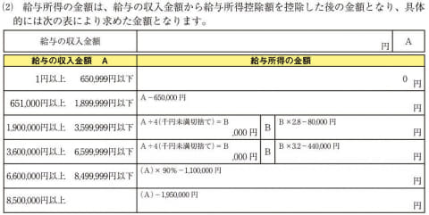 まずは影響が少ない給与所得控除。最低保障額が55万円から65万円に引き上げられたので、年収195万円未満の人は減税となる。195万円以上の人は昨年までと同じだ。このあと説明する基礎控除の48万円→58万円の引き上げとあわせて103万円の壁を123万円に引き上げる効果はあるのでパート・アルバイトの人には影響するが、正社員で働くサラリーマンへの影響はほぼない。