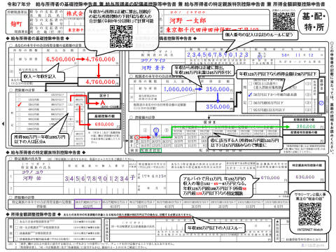 また、前述のとおり、今年から税制改正により基礎控除(48万円から58万円に引き上げ)と給与所得控除(最低保障額が55万円から65万円に引き上げ)の変更が行われ、さらに主に大学生の年代のアルバイト所得に関連してくる「特定親族」の新設など大きな改正が行われた。そのため扶養親族の構成が変わらなくとも、記入する内容が前年と異なってくる可能性もあるので、確認してほしい。