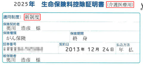 記入例2:旧制度の一般生命保険+新制度の介護医療保険+旧制度の年金保険の場合