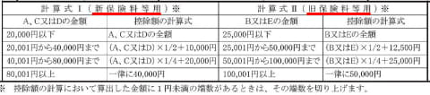 生命保険料控除の計算は面倒くさい。加入している生命保険の1年間の支払額から「生命保険料控除」の額を算出する計算式は、申告書の最下段に[計算式I(新保険料等用)][計算式II(旧保険料等用)]が用意されている。