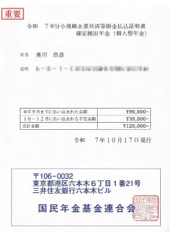 「小規模企業共済等掛金控除(iDeCo)」の記入