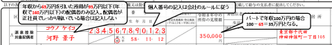 最上段の左側の会社名、法人番号、住所などは会社が記入してくれるはず。右側は氏名と住所。この段の記入は問題ないだろう。