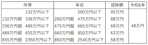 令和6年、令和7年、令和8年の基礎控除の所得階層ごとの控除額を表で見てみよう。