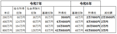 令和7年分の減税を算出する