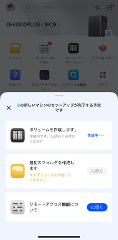 実際にUGREENのNASをセットアップすると分かるが、スマホ用の「UGREEN NAS」アプリでは、画面を進めていくだけで、リモートアクセスが自動的に構成されるし、基本設定完了後に必要な作業(ボリュームの作成、共有フォルダの作成)などがガイドとして表示される。