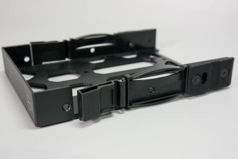 HDD用のトレイは、従来のDXPシリーズで採用されていた画期的な構造(工具不要で取り付けられる)ではなく、HDDをネジで固定するタイプとなっている。コストの問題もありそうだが、おそらくネジでしっかりとHDDを固定することで、振動を抑えるのが狙いだと思われる。
