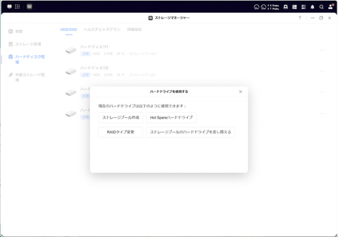 また、容量の増設やRAIDの移行などの操作も簡単にできるようになっている。