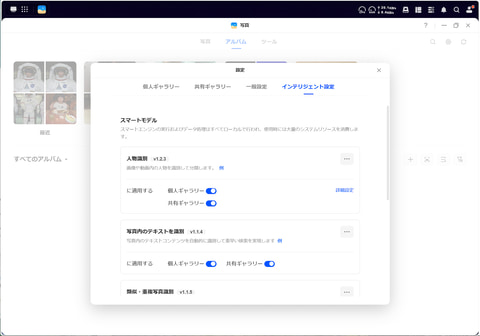 本製品で負荷が高くなりそうな用途としては、写真の自動認識がある。本製品では「写真」アプリのインテリジェント設定で「スマートモデル(AIモデル)」を有効化することで、「人物認識」「写真内のテキストを識別」「類似・重複写真識別」「シーンとオブジェクト識別」「画面認識」などの機能を利用できる。