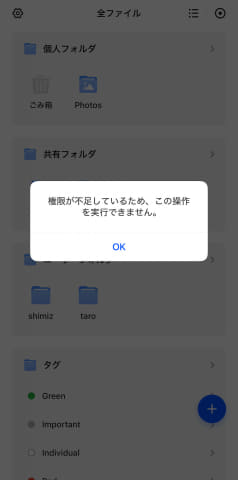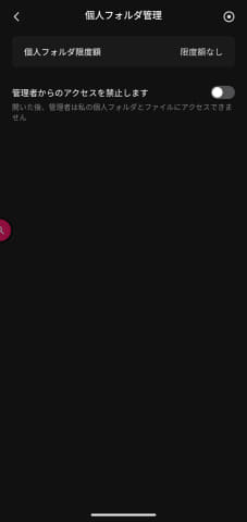 このため、「ファイル」アプリの左上にある「設定(歯車のアイコン)」から「個人フォルダ管理」を開き、全てのユーザーを対象に「個人フォルダを開く」と「自主管理権」を「オン」にしておく。これで、メンバーごとの個人フォルダが作成されると同時に、各ユーザーは自分の個人フォルダに対するプライバシー設定が可能になる(あくまでも、プライバシー設定が可能になるだけで、まだ管理者からのアクセスを完全に遮断できているわけではないので注意)。