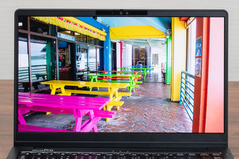 これこそ、有機ELの最大の利点であり、プロのクリエイターによる写真や動画の編集、カラフルなデザイン制作といった、ディスプレイで本来の色をしっかり確認できる必要がある用途にも問題なく対応できるクオリティと言える。これがエントリークラスのビジネスノートPCに搭載されることで、写真や動画を使ったプレゼンにおいてもインパクトを強め、商談用途にも大いに活躍してくれるはずだ。