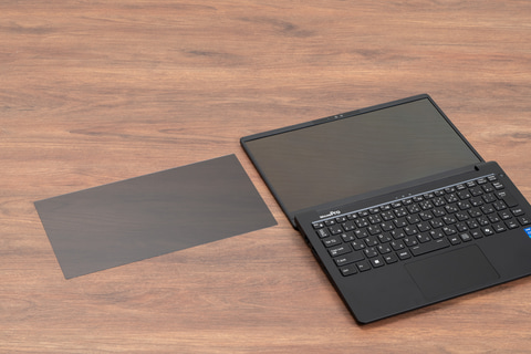 なお、覗き見防止フィルターを装着すると、正面から見た場合でも少し暗く見えるようになる。ただ、この覗き見防止フィルターは簡単に着脱して利用することも可能となっている。そのため、オフィス利用時には外しておき、外出時にのみ装着するようにすればいいだろう。