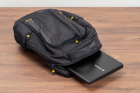 本体サイズは305.8×211×21mm。ディスプレイサイズが13.3型ということもあって、比較的コンパクトで、バックパックやビジネスブリーフケースなどにも余裕を持って収納できる。14型クラスのモバイルノートPCよりもひとまわり小さく、新幹線や旅客機のテーブルにも余裕を持って置ける点も、移動の多いビジネスマンにとってありがたい部分だ。