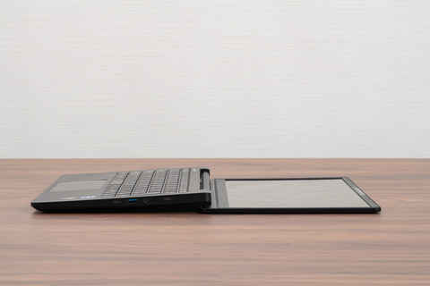 まずディスプレイ。先に紹介したように有機ELディスプレイを採用する点もそのひとつだが、ディスプレイが180度水平まで開く点も大きな特徴。対面プレゼンで便利なのはもちろんだが、この構造によって故障が少ない点も見逃せない。180度まで開かないディスプレイを搭載するノートPCでは、ディスプレイを無理に開こうとして破損する例が非常に多いが、C3-I7U01BK-Aならその心配がない。故障が少ないということは、ビジネスを止める心配が少ないということでもあり、企業にとってありがたいはずだ。