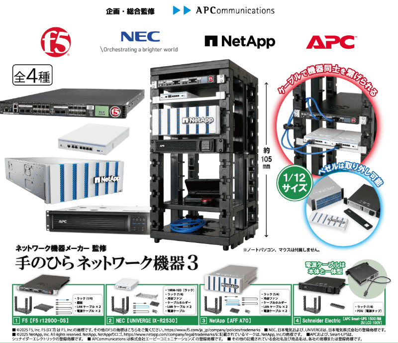 人気のカプセルトイ「手のひらネットワーク機器」第3弾が6月発売、F5、NEC、NetApp、Schneider Electric製品が登場