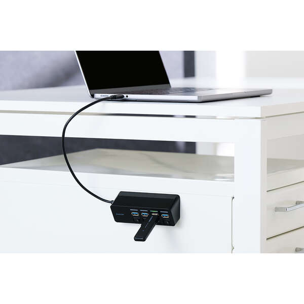 PCと連動する「給電オフ」機能が付いたセルフパワー対応USBハブ「400-HUBA070BK2」、サンワサプライが発売