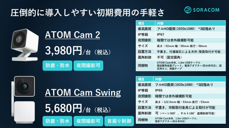 「ATOM Cam 2」でクラウド録画が月990円から、ソラコム「ソラカメ」がビジネス向けに提供開始