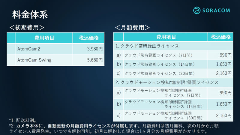• 「ATOM Cam 2」でクラウド録画が月990円から、ソラコム「ソラカメ」がビジネス向けに提供開始