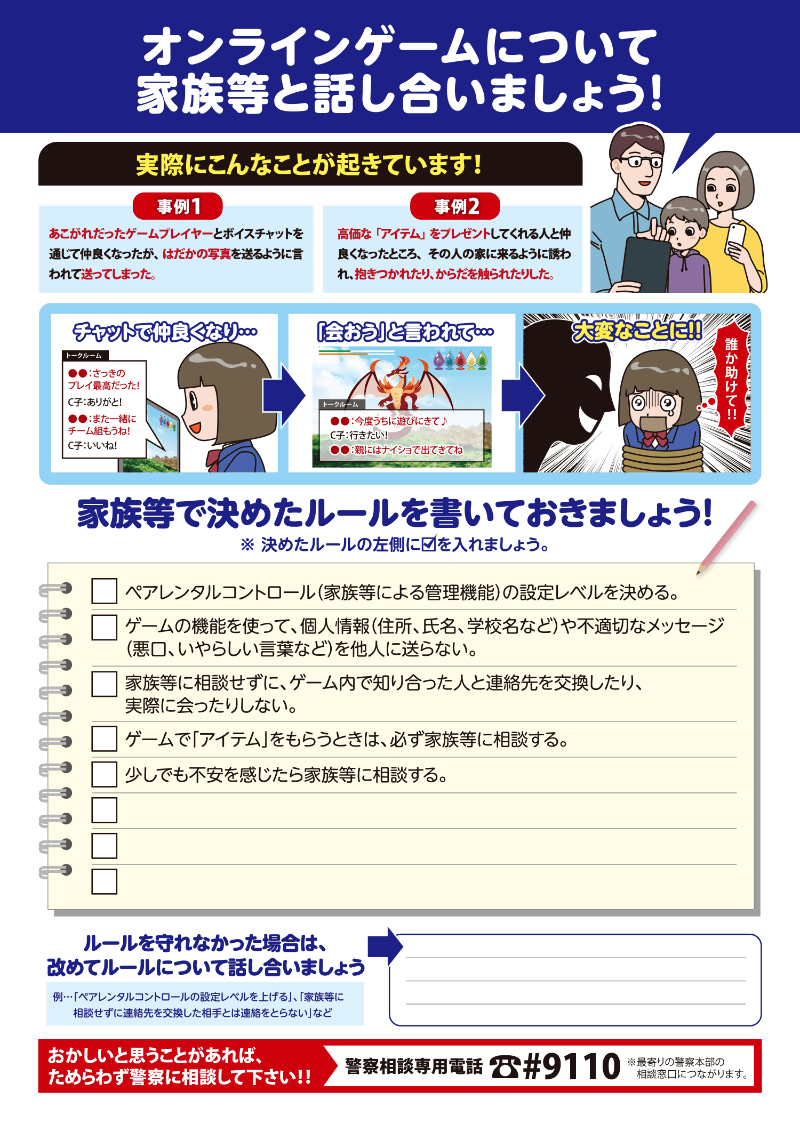 警察庁、保護者向けに「ゲーム上で子どもの信頼を得たうえで犯罪行為を行う者がいる」とオンラインゲームの現状を説明し、注意喚起