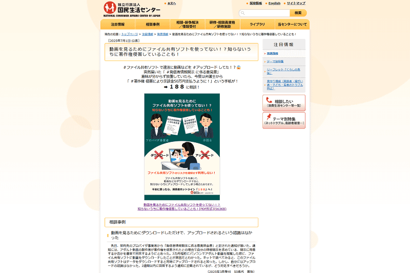 「無料で動画やマンガが見られるソフト」のつもりで「ファイル共有ソフト」を使ってしまうトラブル、国民生活センターが注意喚起