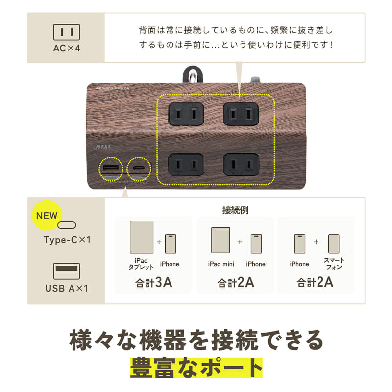 クランプ固定できる電源タップ「700-TAP047UC」のブラウンモデル新発売、サンワサプライ(3/5)
