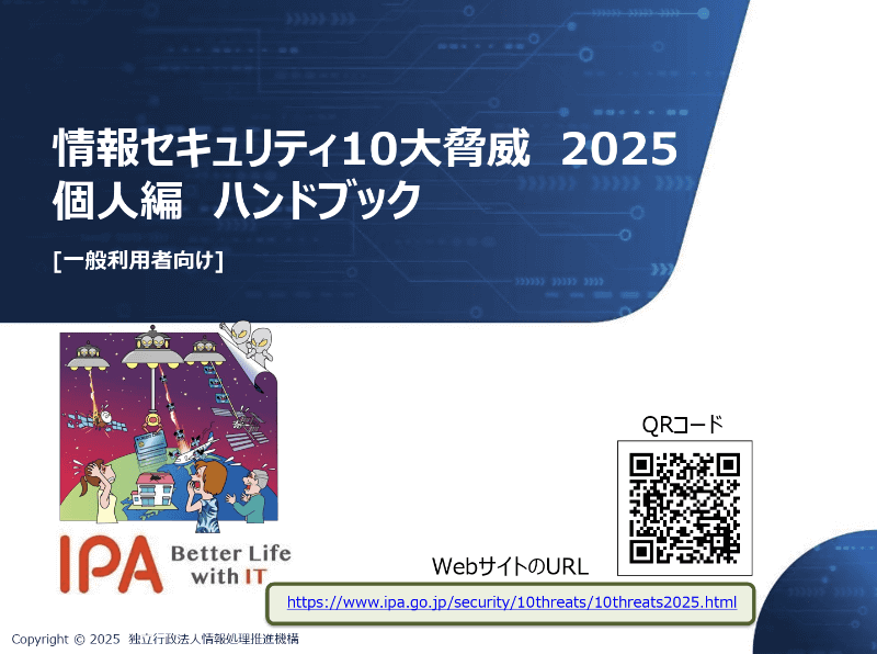 IPA、「情報セキュリティ 10大脅威 2025 個人編」解説冊子を公開、PDFで48ページ