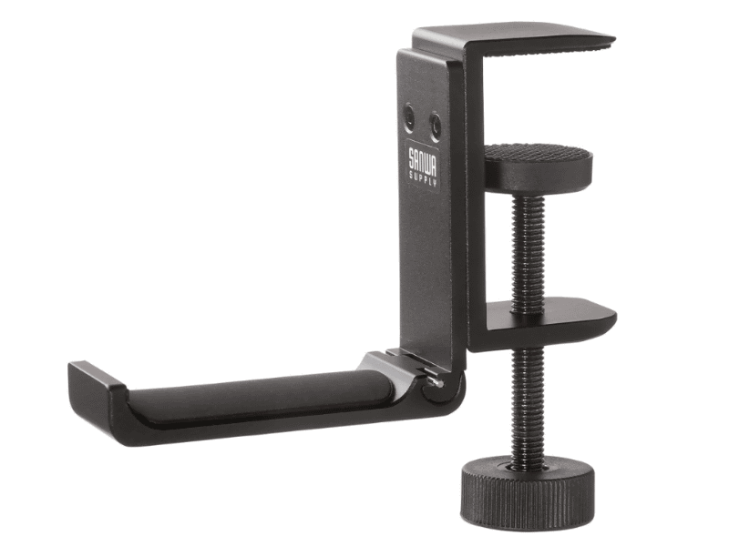 デスクに取り付けるドリンクホルダー+ヘッドフォンフック「PDA-STN71BK」、サンワサプライが発売