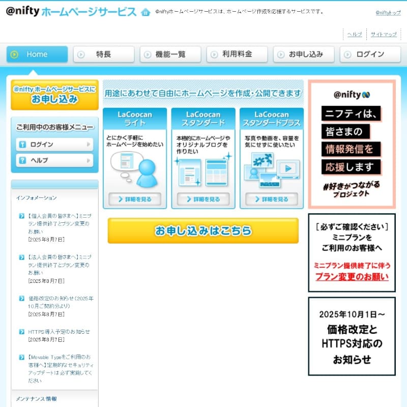 @nifty、MT設置が可能な容量2GBの新ホームページサービス「LaCoocan」