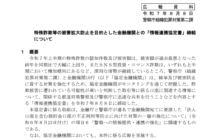 警察庁、銀行4行と特殊詐欺の被害拡大防止のため「情報連携協定書」締結