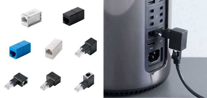 有線LANポートの角度を変えるL型変換アダプター「ADT-RJ6A-L」シリーズ4製品、サンワサプライが発売