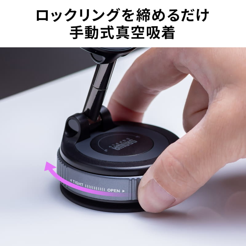 真空吸盤でしっかり固定! 角度調整できるMagSafe対応のスマホホルダー「200-STN094BK」、サンワサプライが発売(2/6)