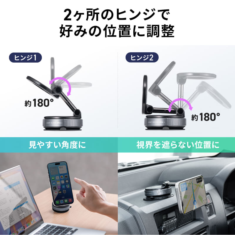真空吸盤でしっかり固定! 角度調整できるMagSafe対応のスマホホルダー「200-STN094BK」、サンワサプライが発売(4/6)
