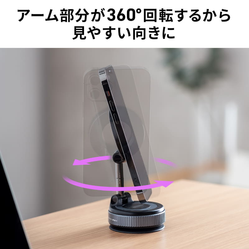 磁力でスマホを固定する「MagSafe対応クランプ式アームホルダー」、サンコーが発売