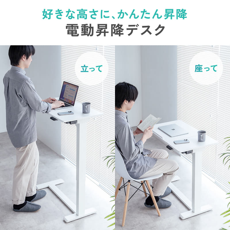 サンワサプライ、配線フリーのバッテリー式電動昇降デスクを発売(5/8)
