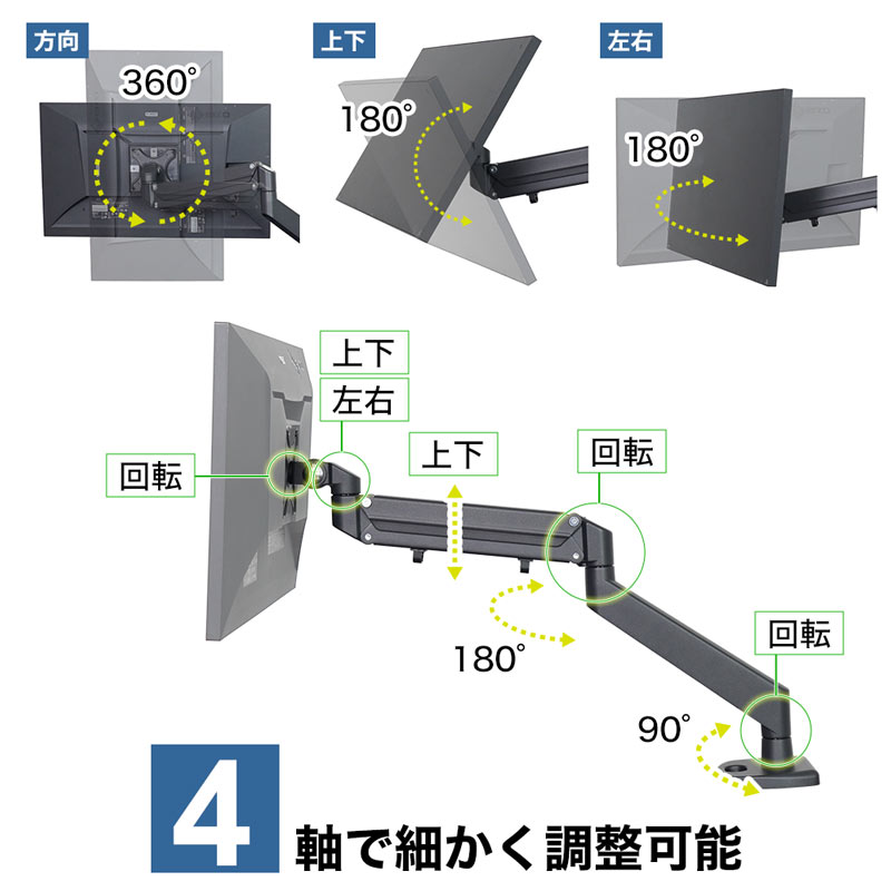 最大27インチ対応のガス圧式シングル/デュアルモニターアーム、サンコーが発売。(5/7)