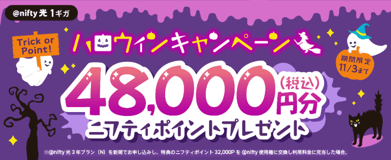 ニフティ、「10ギガデビューキャンペーン」で、月額料金実質1年分のポイントと1万円キャッシュバック