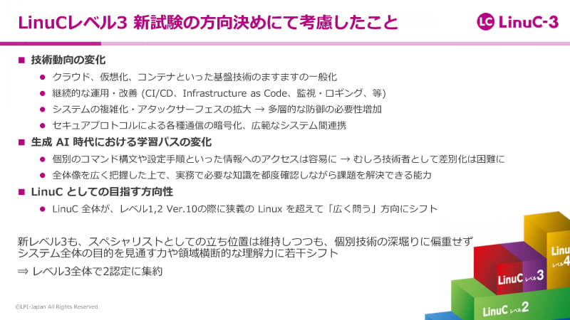 LPI-Japan、Linux技術者認定制度「LinuC」のレベル3で新たに「プラットフォーム」「セキュリティ」のスペシャリスト認定(5/13)
